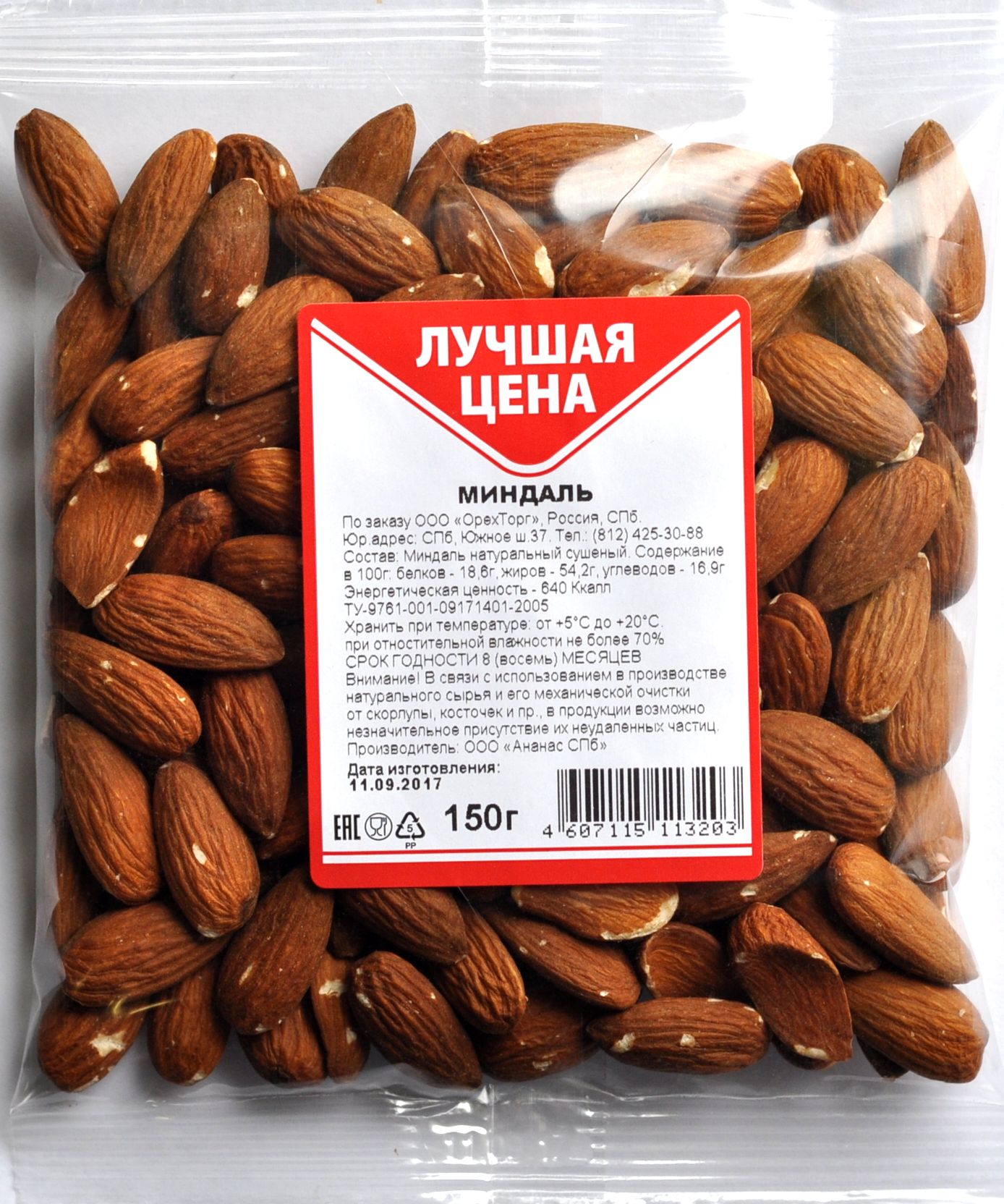 Ядра миндаля, сушеные, целые, нормально развитые, имеющие характерные внешний вид, форму, размеры для данной разновидности